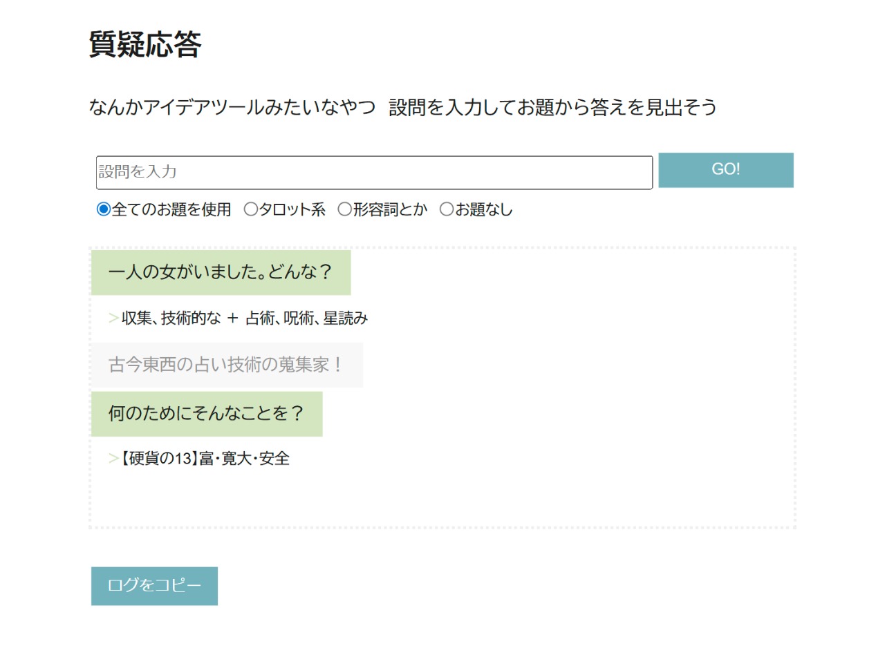 そもそも言葉をランダムに組み合わせるツールなので、当然そこからのアイデアやひらめきを期待するものなんだけど、それはそれとしてってやつ。